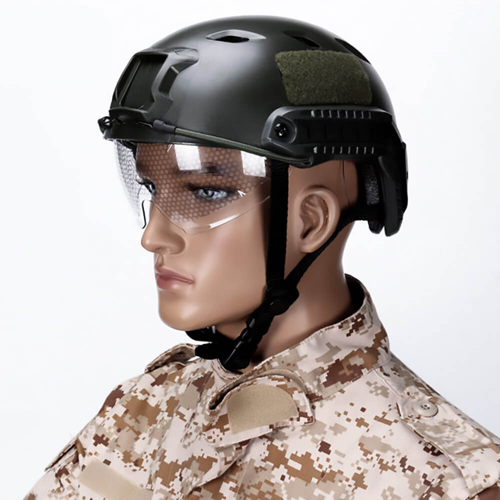 - Особенностишлем оборудован очками для защиты глаз при стрельбе, застегивается на фастекс замок, ремешки можно регулировать на удобную длину при ношение