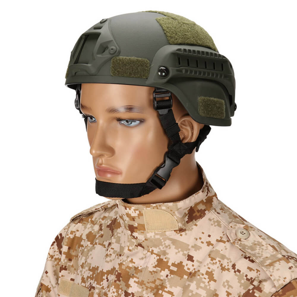 Тактический шлем ABS Mich зеленый из матового ударопрочного пластика в маскировочной расцветке подойдет для защиты головы окружностью 45-65 см во время мотоспорта, страйкбола, игр на открытом воздухе. Современный ударопрочный шлем с очками имеет внутренние мягкие подкладки, которые делают использование более комфортным и удобным. Их можно снимать для очистки. Каска для страйкбола имеет прочные ремешки с 4 точками крепления, которые можно регулировать по длине за счет качественных фиксаторов. Толщина материала делает безухий защитный тактический шлем устойчивым к пластиковым пулям, физическим ударам, падениям и другим видам механических воздействий. На боковых частях находятся направляющие, которые можно использовать для фиксации экшн-камеры или фонаря.